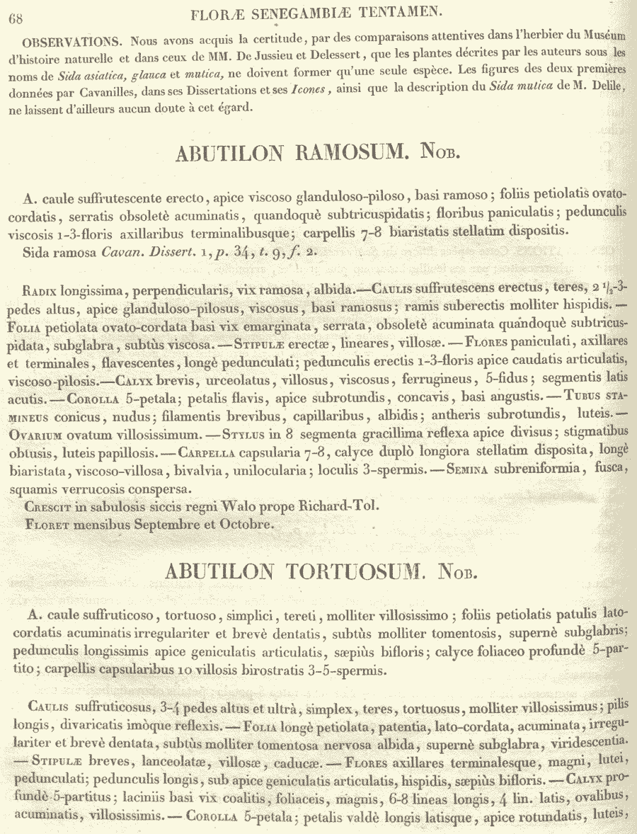 Протолог Abutilon tortuosum Guill. & Perr. (Florae Senegambiae Tentamen 1: 68. 1831):