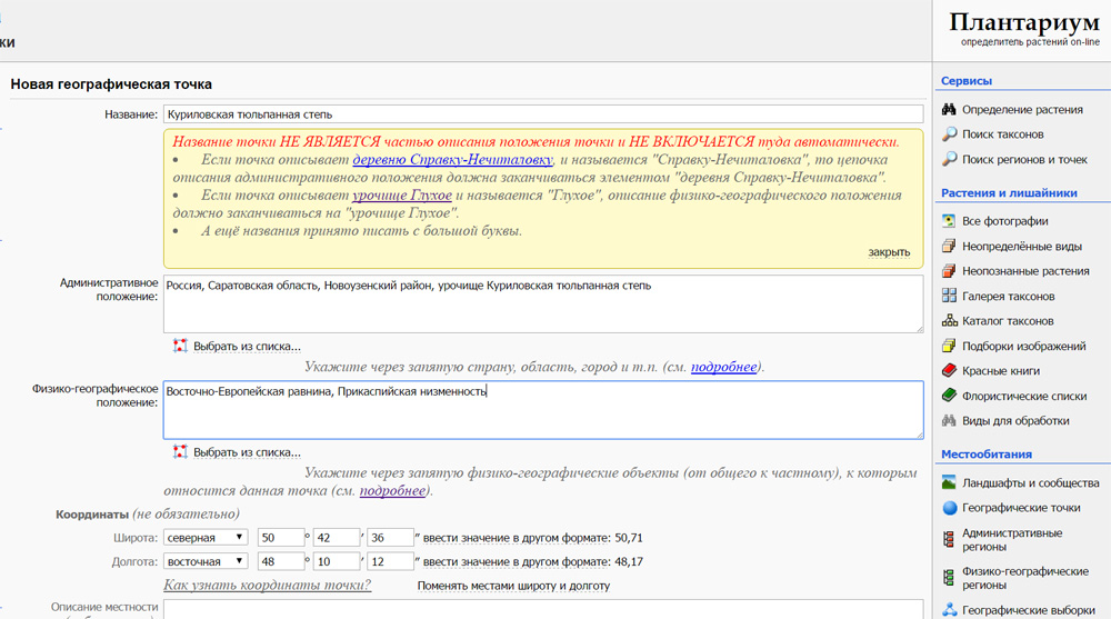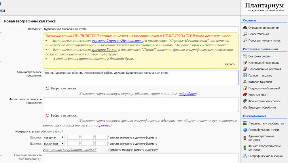 Если что-то хотите написать в описании точки, будет здорово. Я ничего про тюльпанную степь не знаю. |
