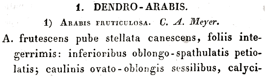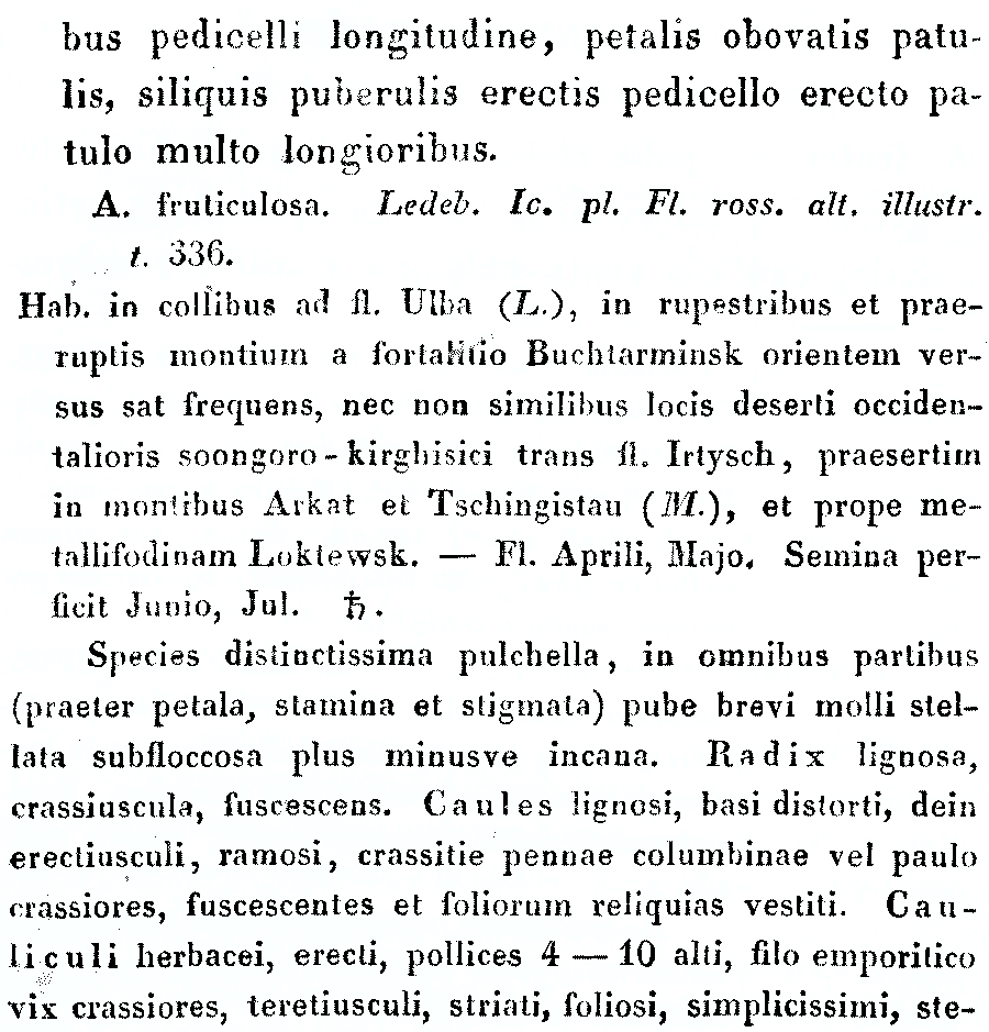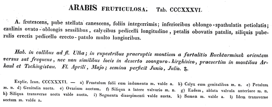 Протолог Arabis fruticulosa C.A. Mey. (Ledebour, C. F. Flora Altaica 3: 19(-22). 1831):