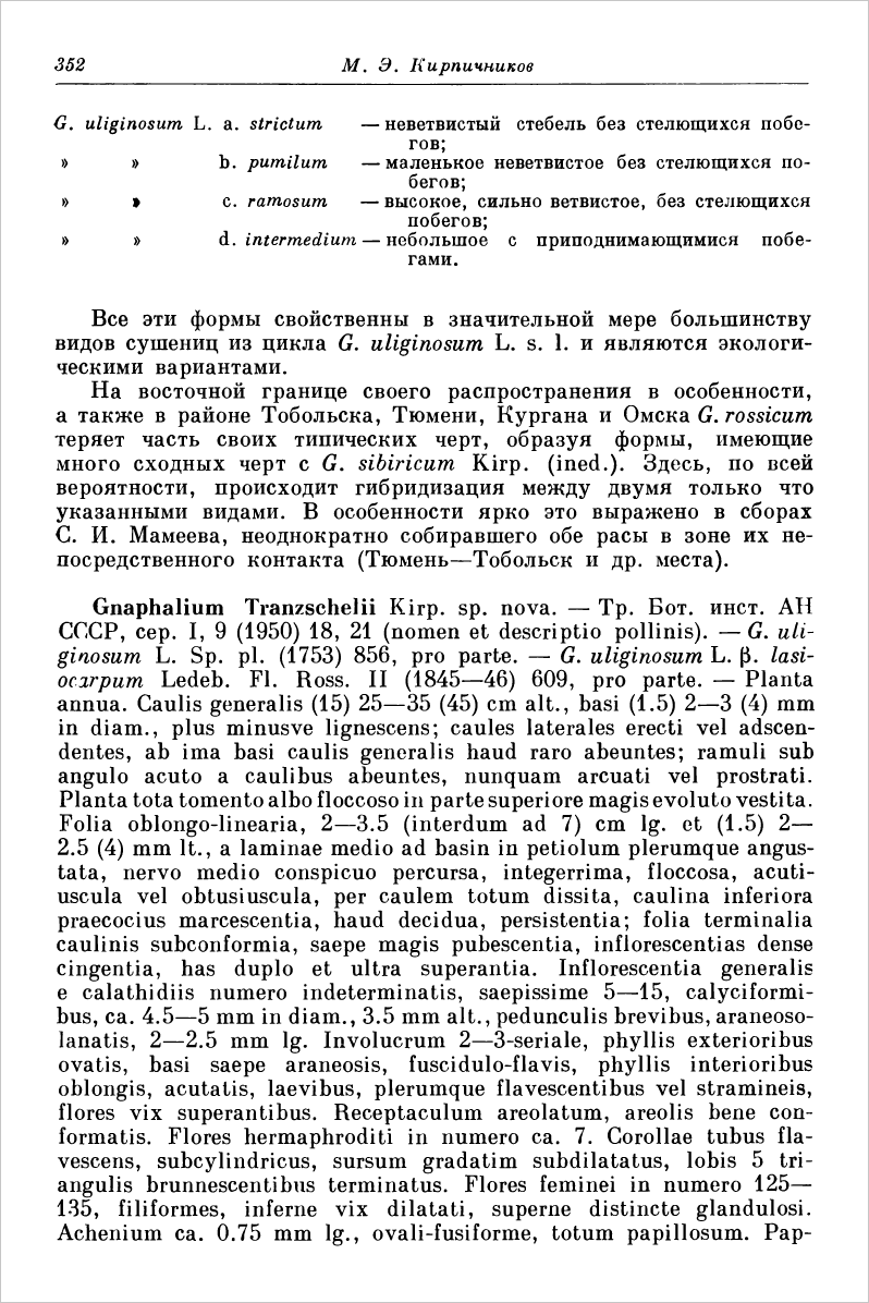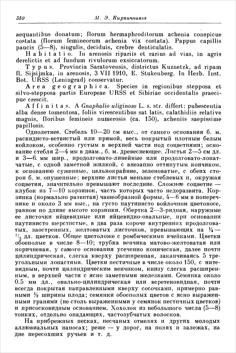 | Сергей Майоров | Сколько можно дробить несчастную Gnaphalium uliginosum!  Достаточно внимательно прочитать обработку самого Моисея Эльевича Кирпичникова во "Флоре СССР", чтобы убедиться, что дробить НЕ НАДО! |