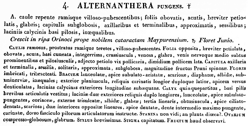 Протолог Alternanthera pungens Kunth (Nova Genera et Species Plantarum 2: 206. 1818 [Feb 1818]):