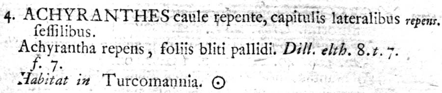 Протолог Achyranthes repens L. (Species Plantarum 1: 205. 1753 [1 May 1753]):