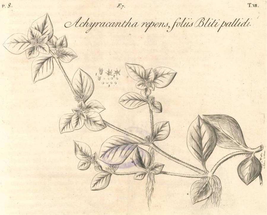 | Andriy Kovalchuk | Лектотип Achyranthes repens L. ("Achyracantha repens, foliis Bliti pallidi" in Dillenius, Hort. Eltham., 1: 8, t. 7, f. 7, 1732; designated by Iamonico in Taxon 63: 407, fig. 2 (2014  :