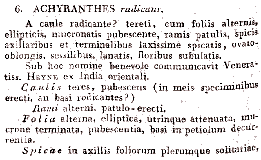 | Andriy Kovalchuk | Протолог Achyranthes radicans B. Heyne ex Roth (Novae plantarum species praesertim Indiae orientalis: 170(-171). 1821):
