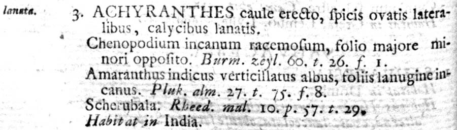 Протолог Achyranthes lanata L. (Species Plantarum 1: 204. 1753 [1 May 1753]):