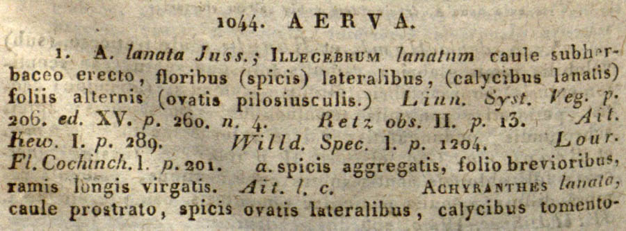 | Andriy Kovalchuk | Обнародование комбинации Aerva lanata (L.) Juss. ex Schult. (Systema Vegetabilium ed. XV bis 5: 564. 1819 [Dec 1819]):