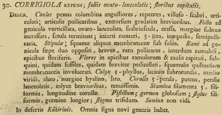 Протолог Corrigiola repens Forssk. (Flora Aegyptiaco-Arabica 207 (1775). [1 Oct 1775]):