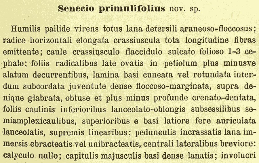 Senecio primulifolius Sommier & Levier. Таким образом, название