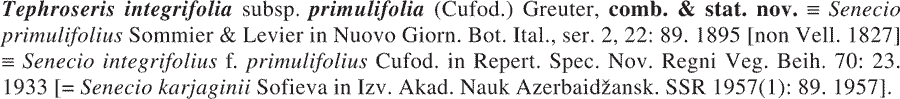 Tephroseris karjaginii (Sofieva) Holub должно иметь приоритет, если рассматривать данный таксон в ранге вида, а