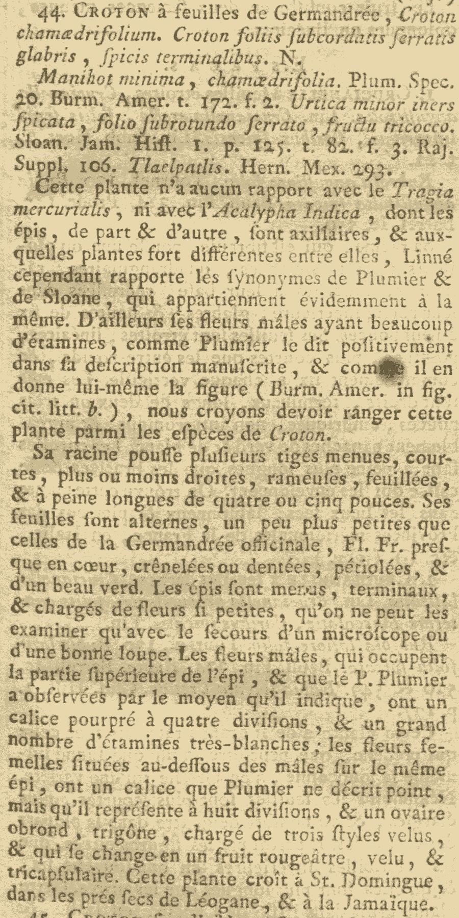 Протолог Croton chamaedrifolius Lam. (Encyclopedie Methodique. Botanique 2(1): 214. 1786 [16 Oct 1786]):