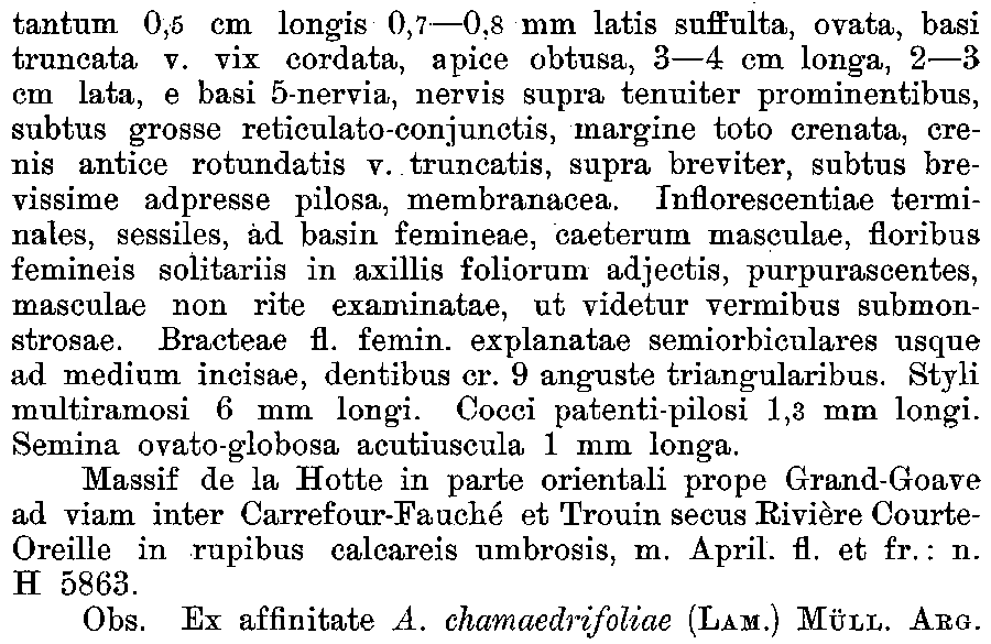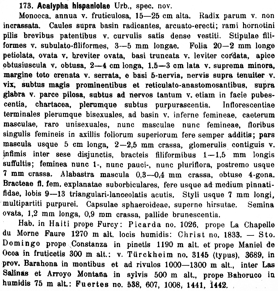 Протолог Acalypha hotteana Urb. (Arkiv för Botanik 20A(15): 59(-60). 1926):
