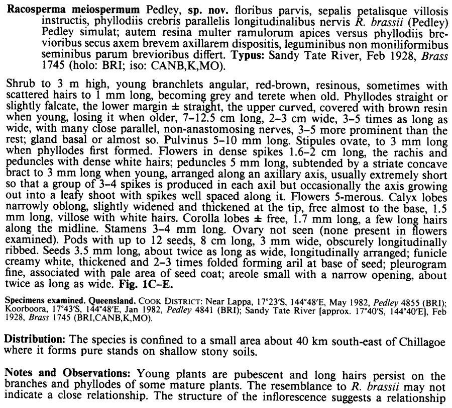 Протолог Racosperma meiospermum Pedley (Austrobaileya 2(4): 321. 1987):