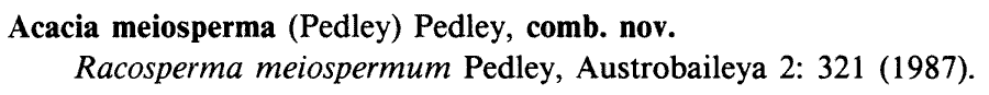 | Andriy Kovalchuk | Обнародование комбинации Acacia meiosperma (Pedley) Pedley (Austrobaileya 3(2): 216. 1990):