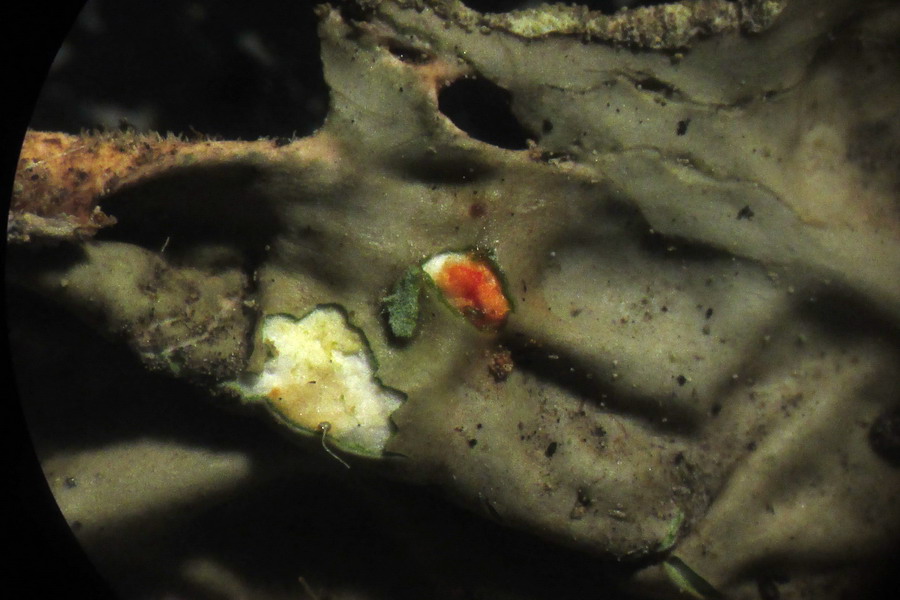 Две дихотомирующих лопасти L.sajanensis (слева) в сравнении со слоевищем L.pulmonaria (справа)