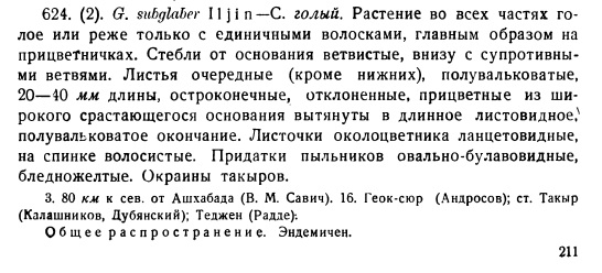 В Определителе растений Средней Азии, 1972, Т. 3. с. 135 он сведён в синонимы виды G. gamocarpus (Moq.) Bunge, но всё же упоминается, правда там записано как G. subglaber Iljin in Фл. Туркм. 2 (1937) 211 (ross.)