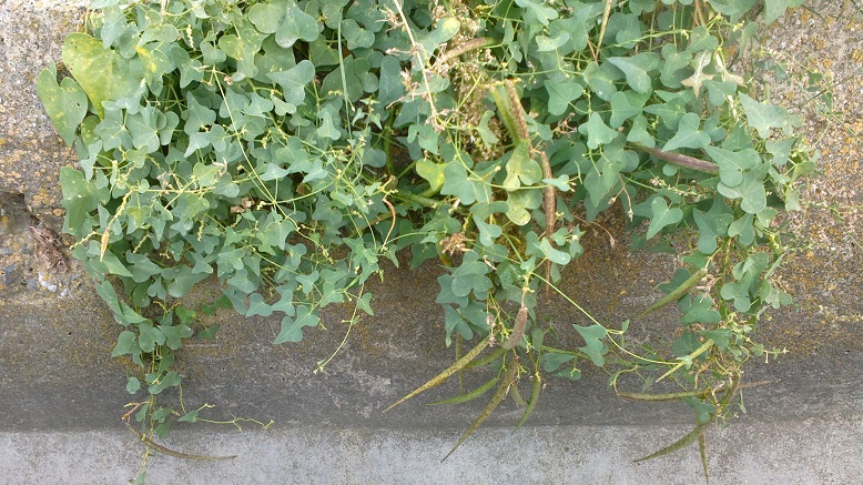 позавчера в окр.Феодосии, у дороги на ливнёвке. листья сердечками и острые длинные (см по 10) стручки. Спасибо!