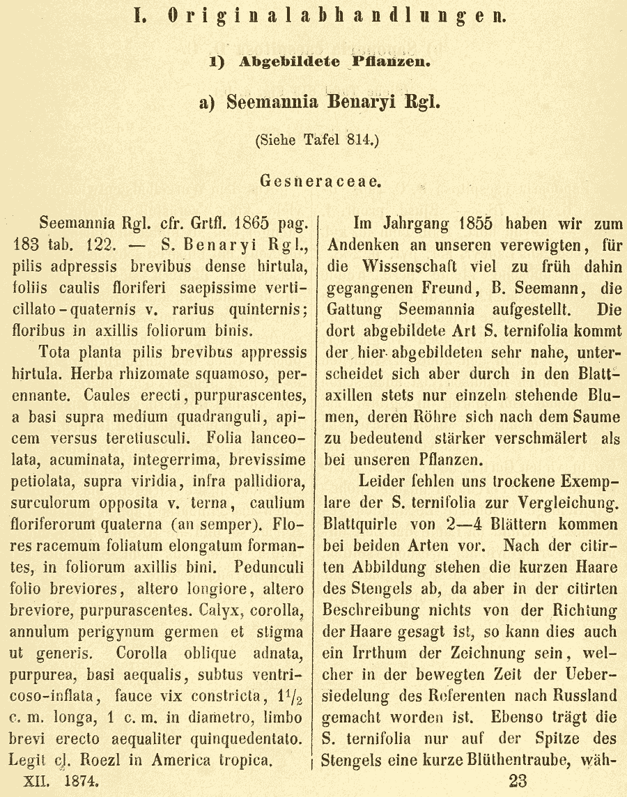 | Andriy Kovalchuk | Протолог Seemannia benaryi Regel (Gartenflora 23: 353, t. 814. 1874):