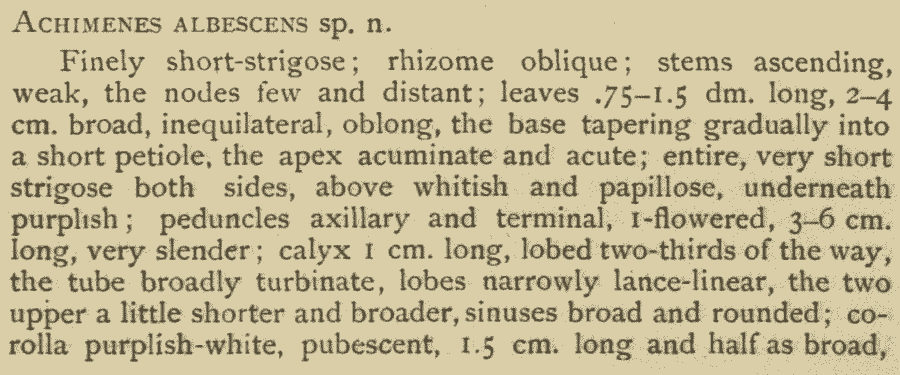 Протолог Achimenes albescens Rusby (Memoirs of the Torrey Botanical Club 6(1): 94. 1896):