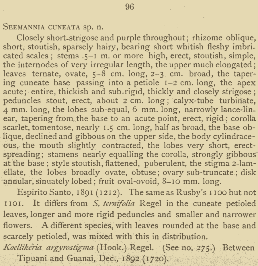 Протолог Seemannia cuneata Rusby (Memoirs of the Torrey Botanical Club 6(1): 96. 1896):