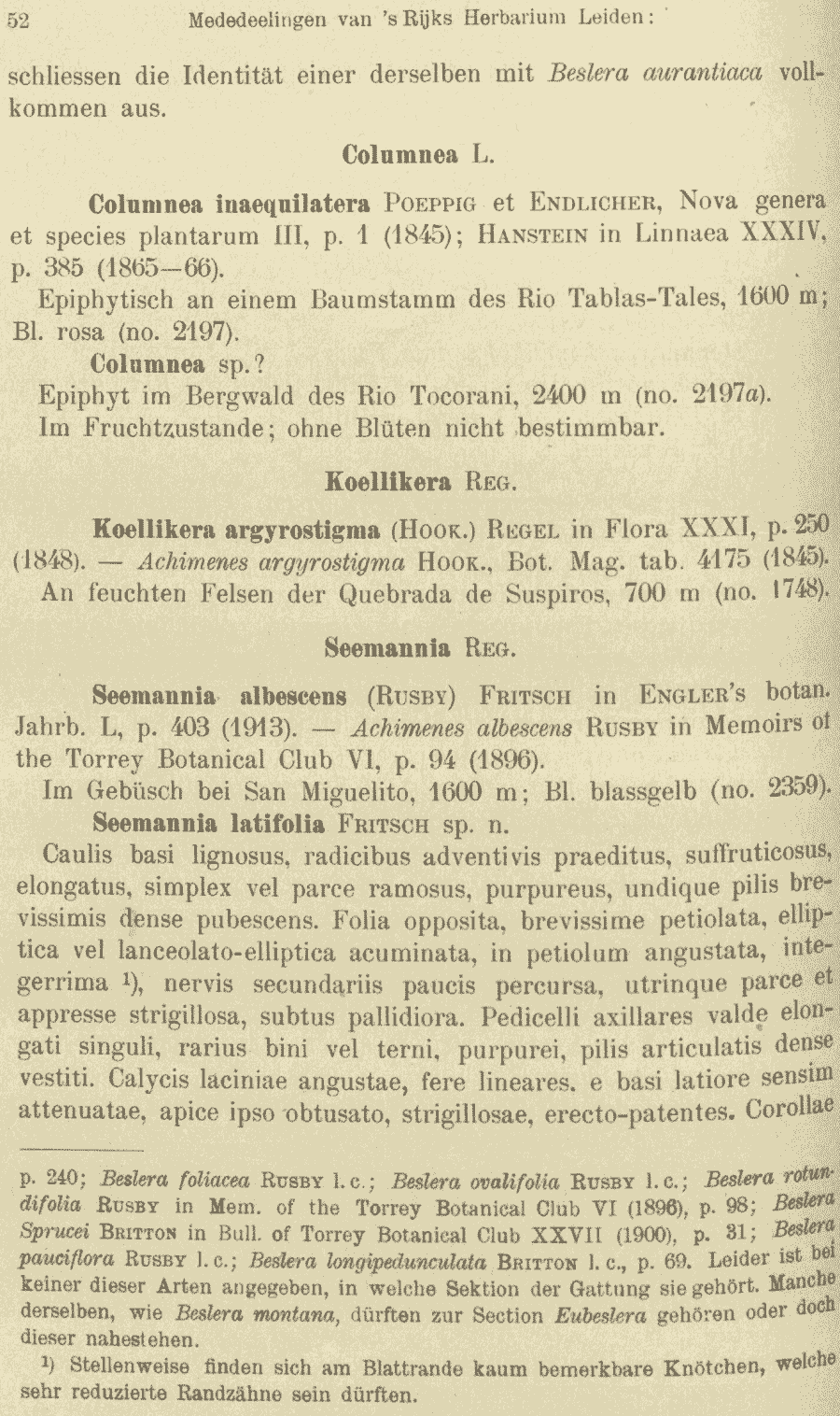 Протолог Seemannia latifolia Fritsch (Mededeelingen van's Rijks-Herbarium 29: 52. 1916):