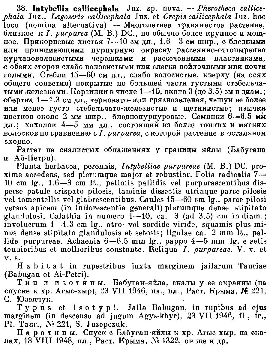| Любовь Рыфф | Но IPNI почему-то признает только вариант Intybellia callicephala Juz. |