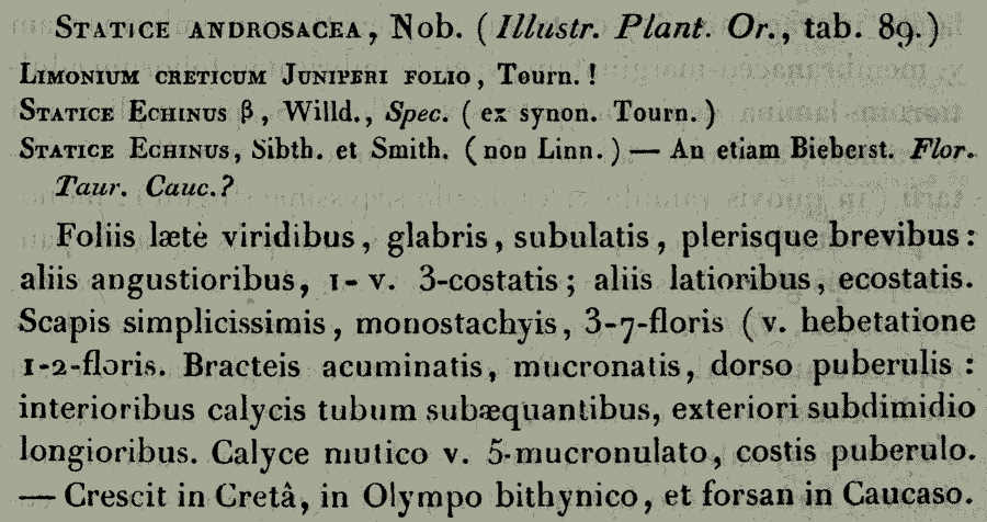 Протолог Statice androsacea Jaub. & Spach (Annales des sciences naturelles. Botanique, ser. 2, 20: 250. 1843):