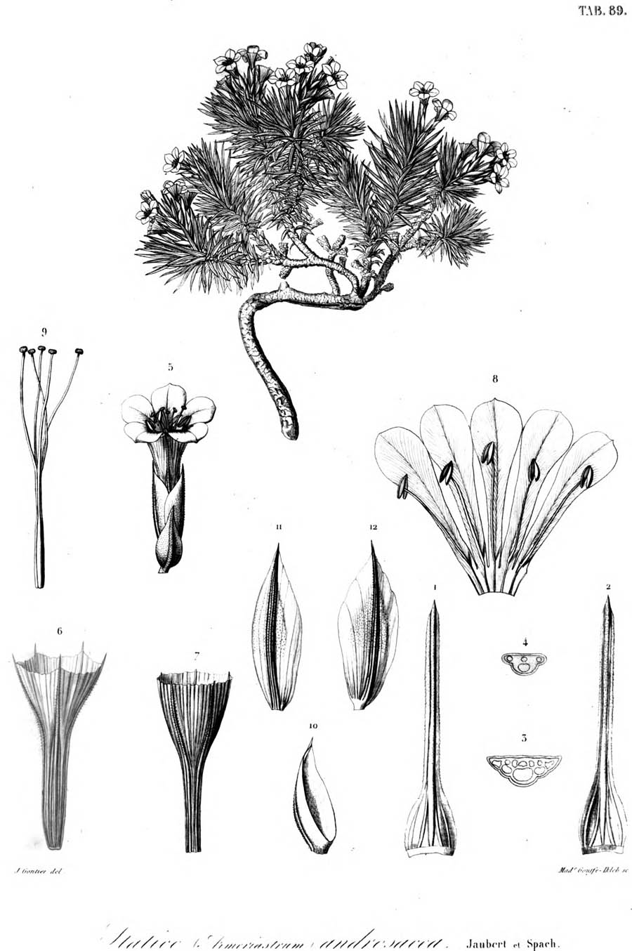 | Andriy Kovalchuk | Описание и иллюстрация Statice androsacea Jaub. & Spach из работы Illustrationes Plantarum Orientalium 1(10): 161-162, 164, tab. 89. 1844 [Mar 1844]: