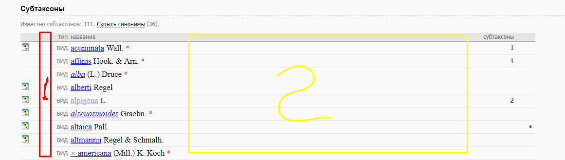 | Yuri Postnikov | 1. Когда открываем перечень видов рода, видим, фактически, таблицу: