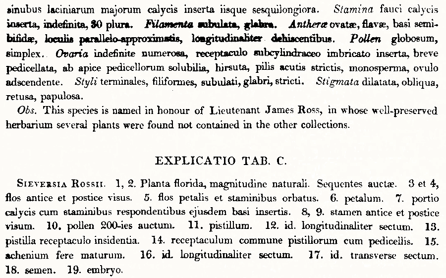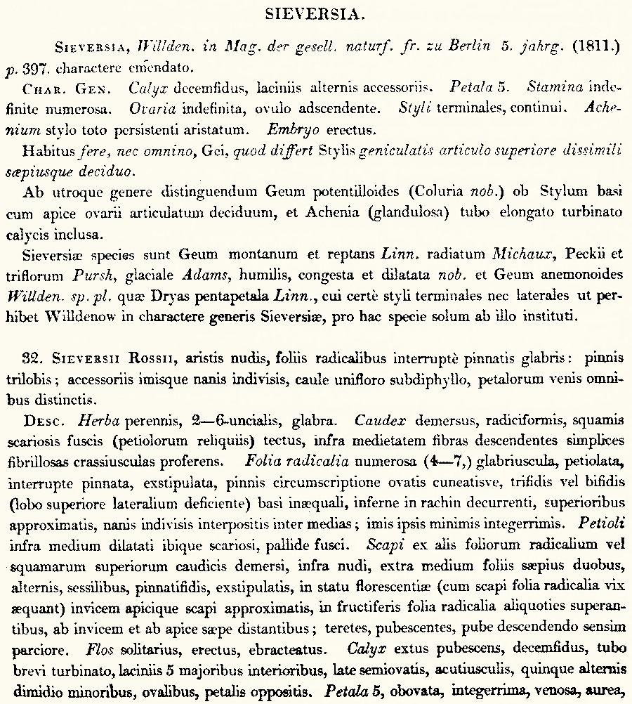 Протолог Sieversia rossii R. Br. (Chloris Melvilliana: a list of plants collected in Melville Island, (latitude 74-75 N., longitude 110-112 W.) in the year 1820: 18(-19). 1823):