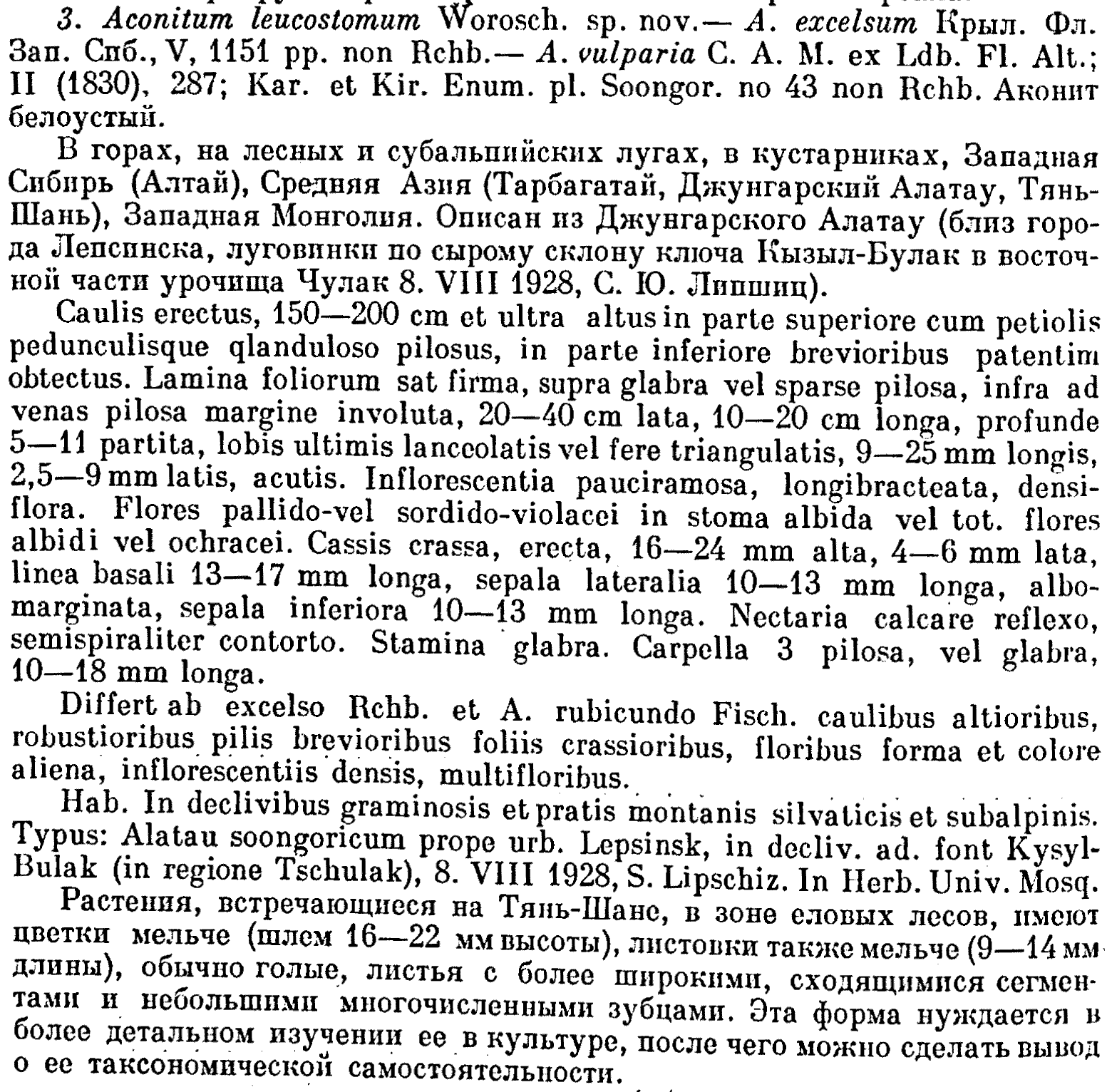 Протолог Aconitum leucostomum Worosch. (Бюллетень Главного ботанического сада 11: (60-)62. 1952):
