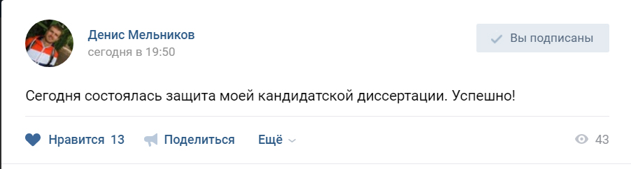 Поздравляем Дениса Мельникова!