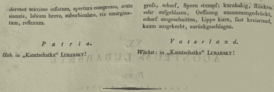 | Andriy Kovalchuk | A. fischeri Rchb. и A. lubarskyi Rchb. были описаны в одной и той же работе с разницей в несколько страниц. Ещё в 1862 г. эти названия были синонимизированы Э. Регелем, который в качестве основного названия выбрал A. fischeri, не приведя при этом, правда, каких-либо аргументов в пользу такого выбора: