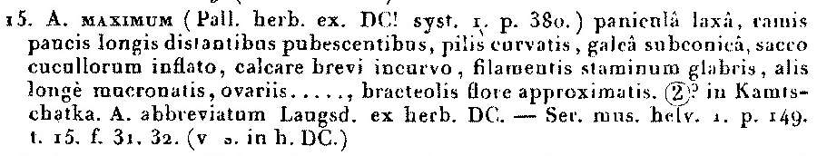 | Andriy Kovalchuk | Обнародование комбинации Aconitum abbreviatum Langsd. ex DC. (Prodromus Systematis Naturalis Regni Vegetabilis 1: 61. 1824 [mid Jan 1824], pro syn.):