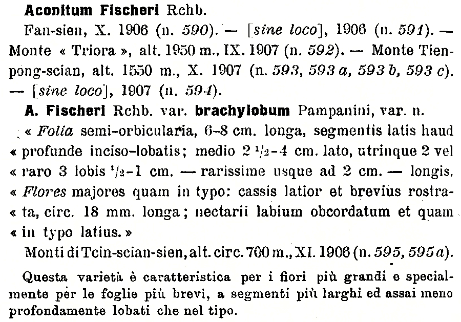 | Andriy Kovalchuk | Протолог Aconitum fischeri var. brachylobum Pamp. (Nuovo Giornale botanico italiano. Nuova serie. 17: 268. 1910):