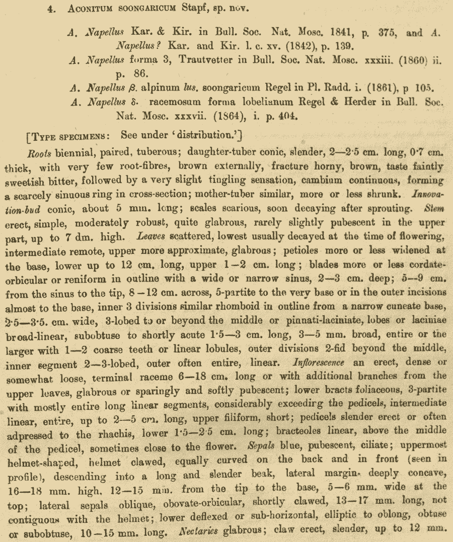 Протолог Aconitum soongaricum Stapf (Annals of the Royal Botanic Garden 10: 141. 1905):
