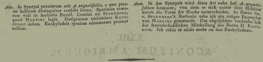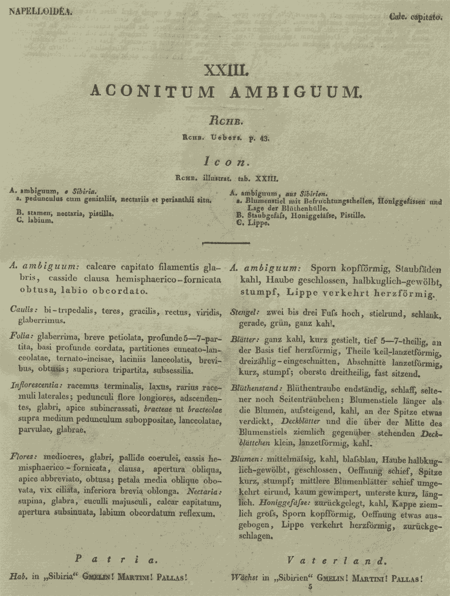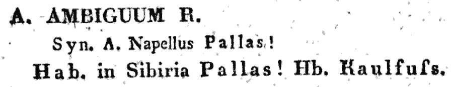 | Andriy Kovalchuk | Название Aconitum ambiguum было использовано также в более ранней работе Г. Г. Л. Райхенбаха "Uebersicht der Gattung Aconitum, Grundzüge einer Monographie derselben" (43. 1819), но вряд ли этот фрагмент можно считать действительным обнародованием нового названия: