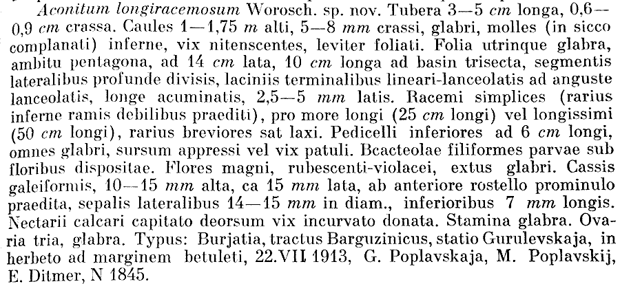 | Andriy Kovalchuk | Протолог Aconitum longiracemosum Worosch. (Бюллетень Главного ботанического сада 64: 35. 1967):