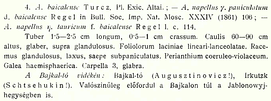 Протолог Aconitum baicalense Turcz. ex Rapaics (Növʹenytani közlemʹenyek 6(5): 148. 1907):