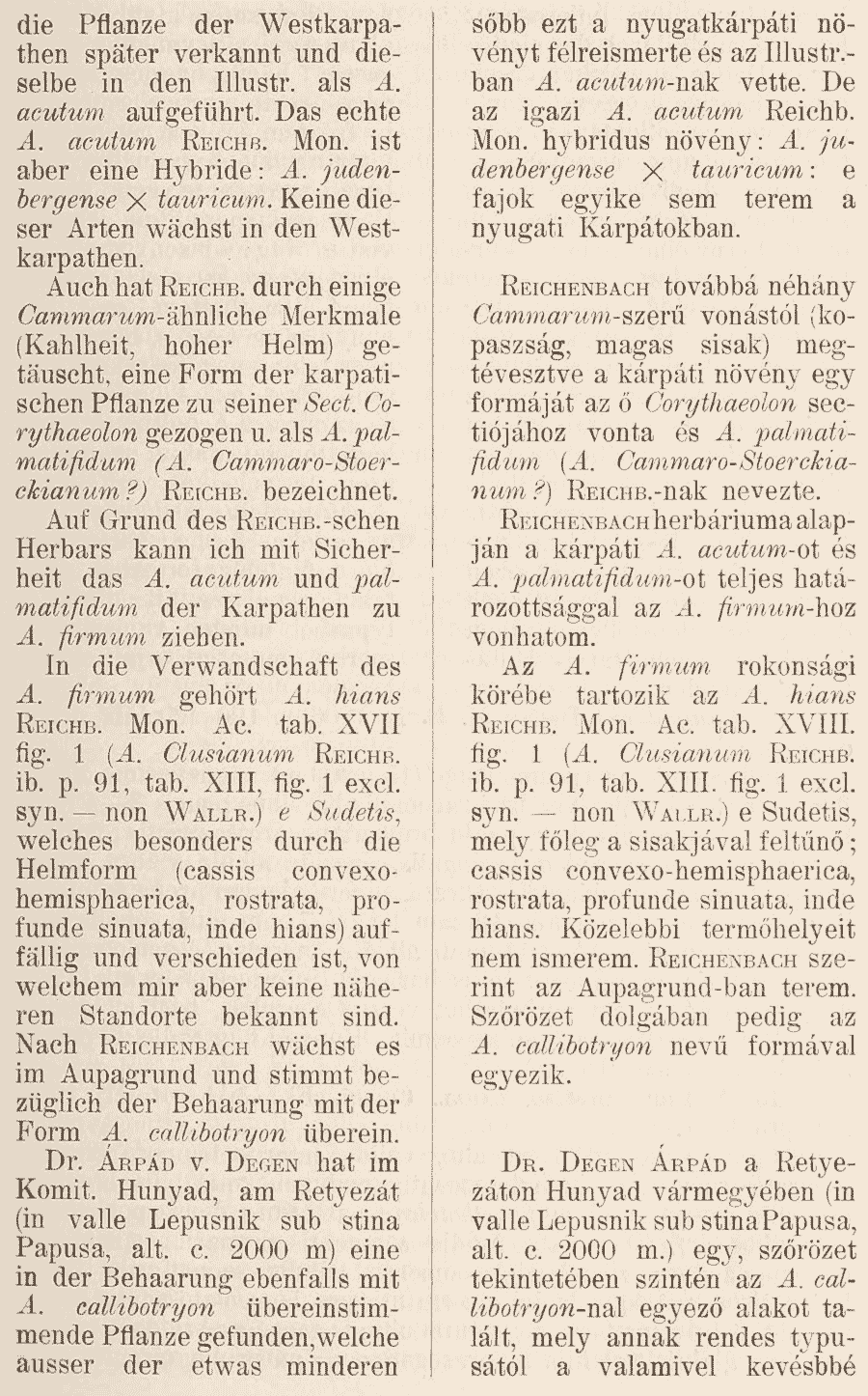 Обнародование комбинации Aconitum skerisorae Gayer (Magyar botanikai lapok 8: 165. 1909 ( pro syn. :