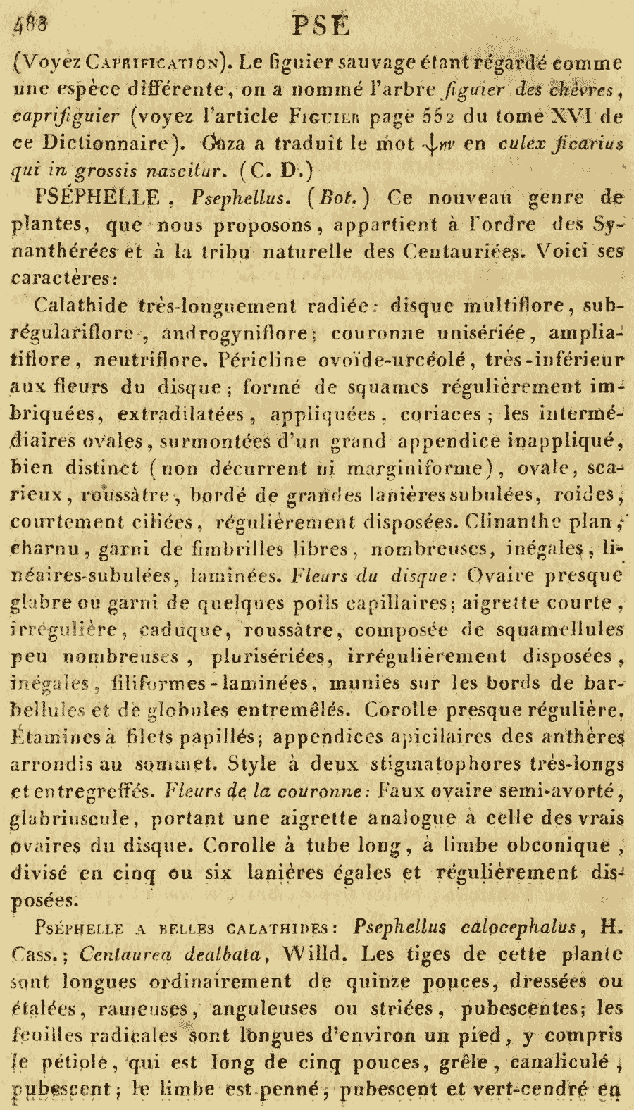 | Andriy Kovalchuk | Протолог рода Psephellus Cass. (Dictionnaire des Sciences Naturelles, ed. 2. [F. Cuvier] 43: 488. 1826; тип: Psephellus calocephalus Cass., nom. illeg. (≡ Centaurea dealbata Willd. ≡ Psephellus dealbatus (Willd.) K. Koch  :