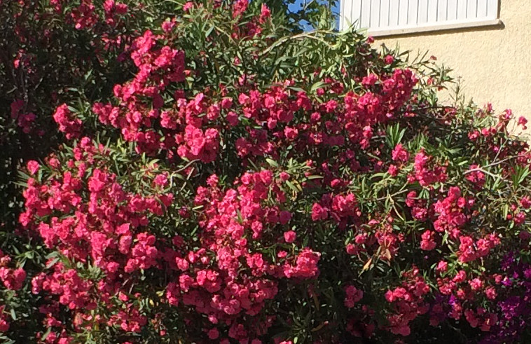 | Елена Баяндина | Они разные. Слева - олеандр вроде, справа - бугенвиллея. |