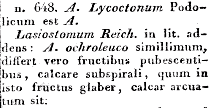 | Andriy Kovalchuk | Протолог Aconitum lasiostomum Rchb. ex Besser (Enumeratio plantarum hucusque in Volhynia, Podolia, Gub. Kiioviensi, Bessarbia Cis-Tyraica et circa Odessam collectarum: 69. 1822):