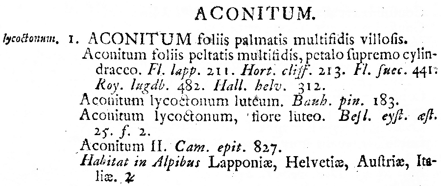 Протолог Aconitum lycoctonum L. (Species Plantarum 1: 532. 1753 [1 May 1753]):