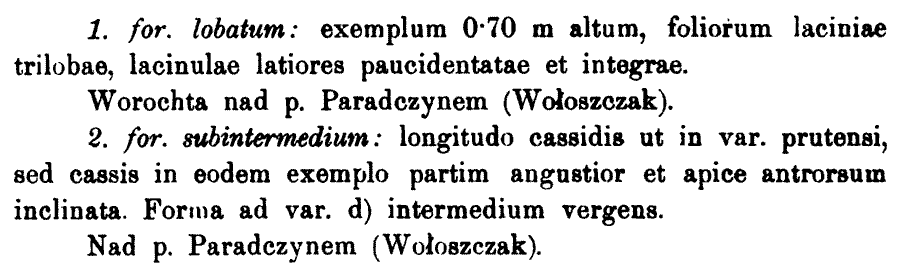 "w Worochcie nad Prutem, 8.1888, leg. E. Woloszczak ( A. paniculatum var. prutense, rev. H. Zapalowicz" (KRAM 133634).