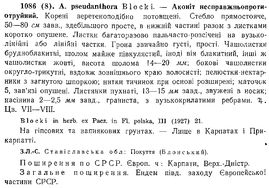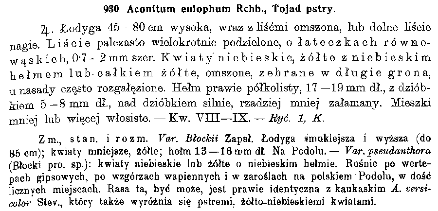 | Andriy Kovalchuk | Протолог Aconitum eulophum var. pseudanthora Blocki ex Pacz. (Flora Polska 3: 21. 1927):