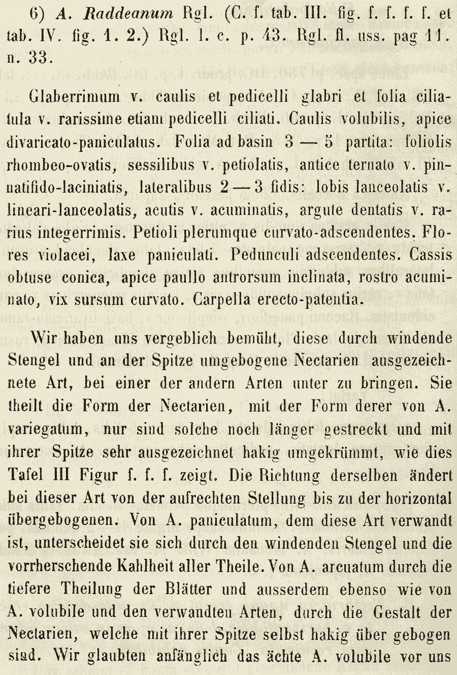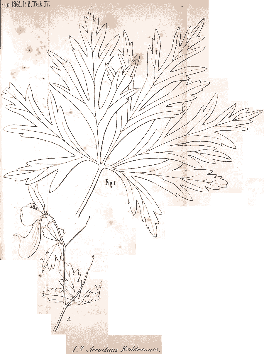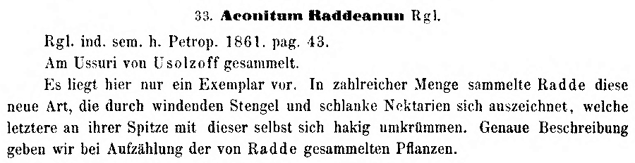 Протолог Aconitum raddeanum Regel (Index Seminum, quae Hortus Botanicus Imperialis Petropolitanus pro Mutua Commutatione Offert: 43. 1861):