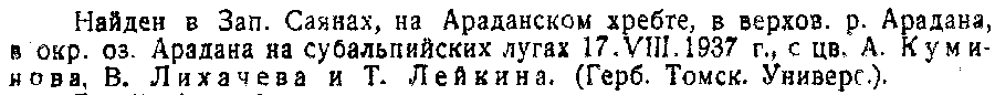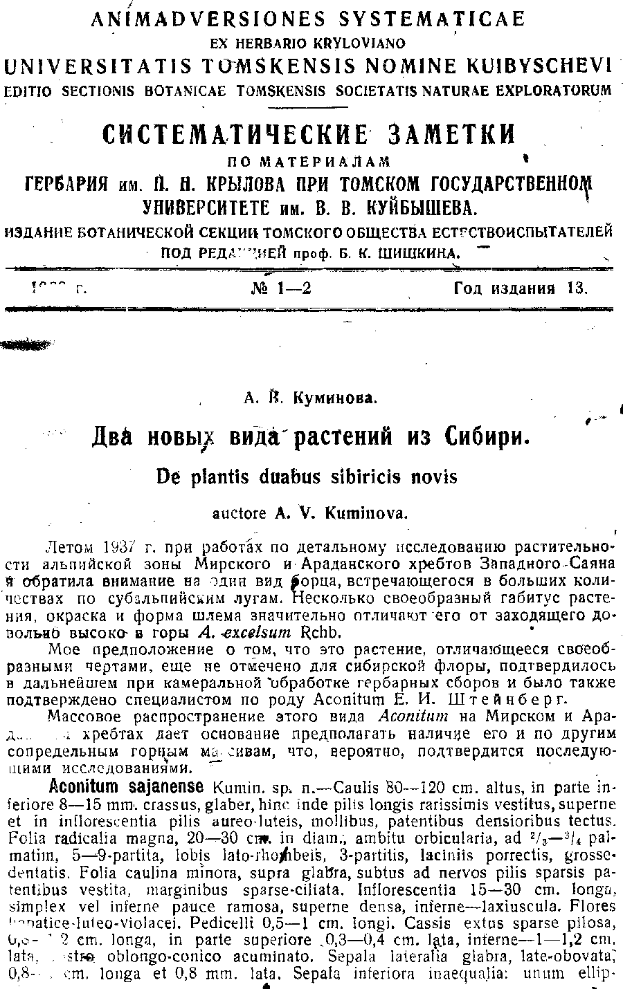 (Систематические заметки по материалам гербария им. П. Н. Крылова при Томском государственном университете им. В. В, Куйбышева 13(1-2): 1(-3). 1939):