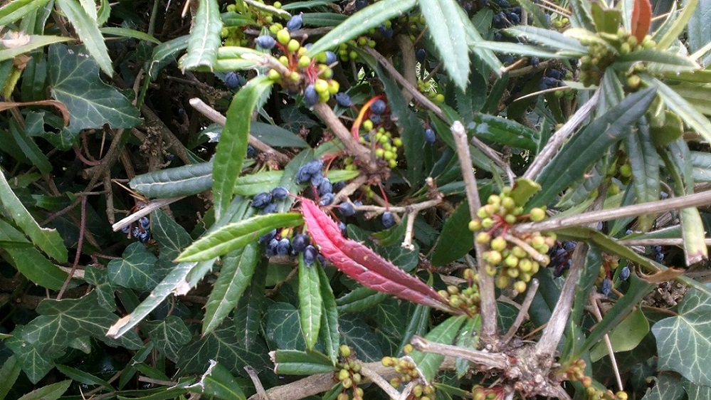 1 - жимолость, Lonicera japonica, видимо. 2 - Барбарис, похож на Berberis julianae
