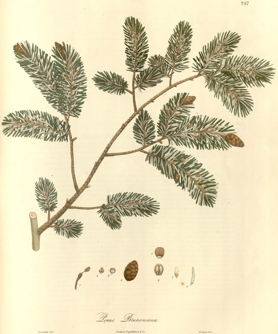 Протолог Pinus brunoniana Wall. (Plantae Asiaticae Rariores: or, Descriptions and figures of a select number of unpublished East Indian plants 3: 24(-25), t. 247. 1832):