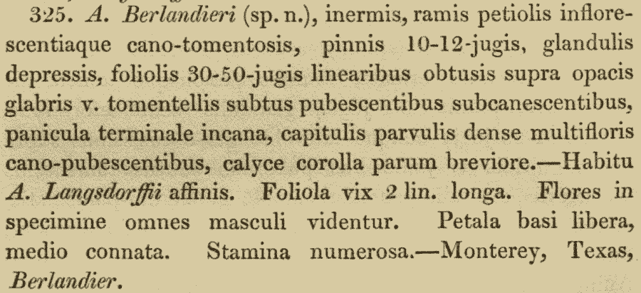 Протолог Acacia berlandieri Benth. (The London journal of botany 1: 522. 1842):